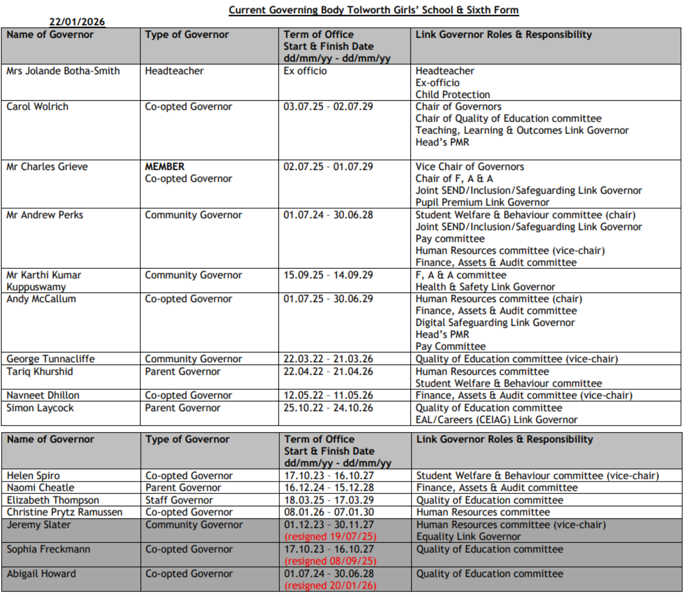 The governing body of Tolworth Girls’ School & Sixth Form (TGS) is comprised of elected parents, academy staff, and representatives from the local community with specialist skills and experience. This may be in finance, marketing, HR, technology and/or as parents seeking the best for our children’s education. What unites us all is a passion for education and seeing today’s children thrive in their school environment.